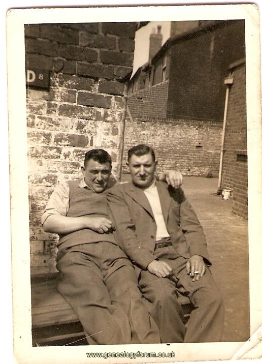 My dad Horace (left) with Syd Brown the barber from Whimsey Bridge,Oldbury sitting in The Brickmakers Arms yard(The Bottom Pub) Eel Street.