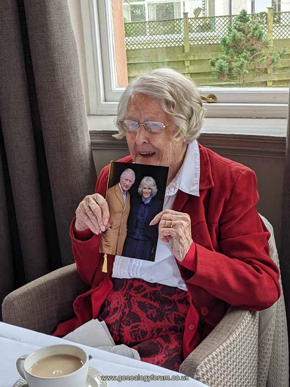 We had arranged for a Birthday Card to come from King Charles, so we kept looking for the arrival in the post and nothing came. M-in-L looked a little disappointed, then who should walk into the party was Merlin Dernie, one of the Deputy Lieutenants of Dumfriesshire with a card from King Charles and Queen Camilla and she gave a speech. I wish you could have seen M-in-L's face, she held the card to her chest and then started kissing his face on the card.