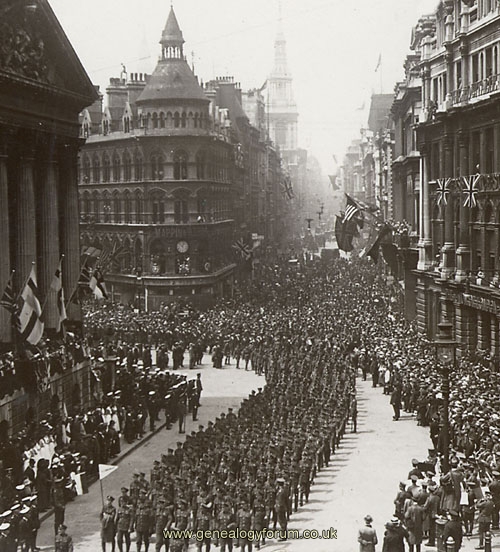 The parade picture is when the battalion returned to London at the end of WWI