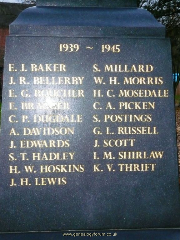 West Midlands, Kinver War Memorial 1939 - 1945