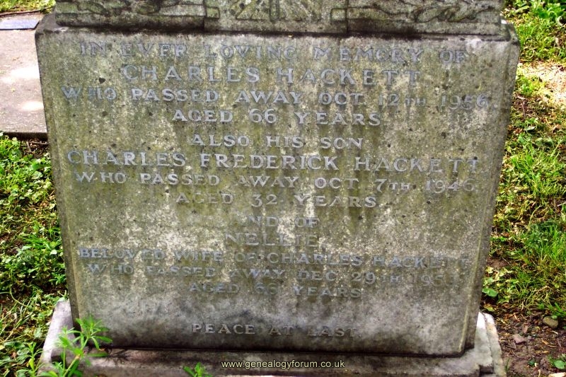 Charles Hackett passed away Oct 12th 1956 Aged 66 yrs