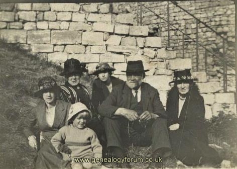 Pamela Haynes nee Hackett is the lady on the left with black hat and striped top. The elderly gentleman is Joseph Marsh and next to him is his wife Francis Marsh. The two young ladies are Joseph and Francis's daughters and a young Grandson.