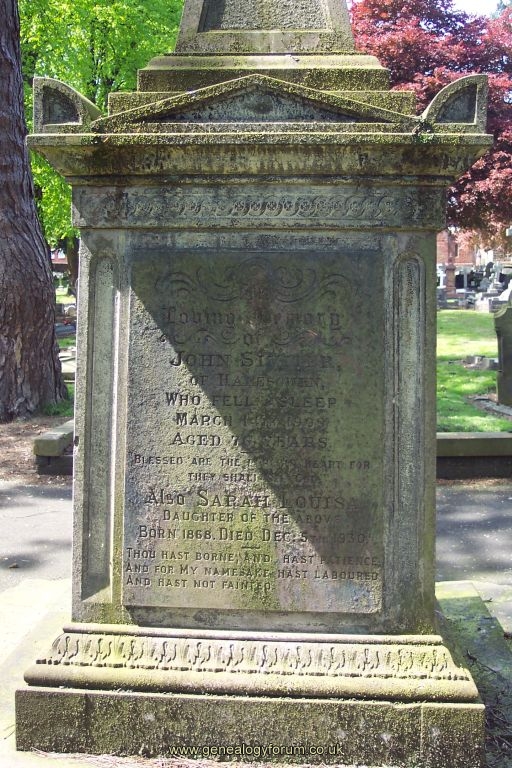 also Sarah Louisa, daughter of the above, born 1868 died December 5th 1930