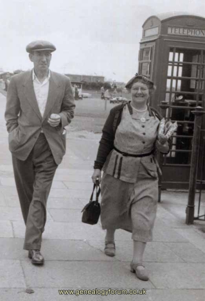This is Frederick Nelson DOWNS-ROSE (great grandfather) and his wife Florence May WALLACE (great grandmother), taken 1957 on vacation at Great Yarmouth, Norfolk, England.